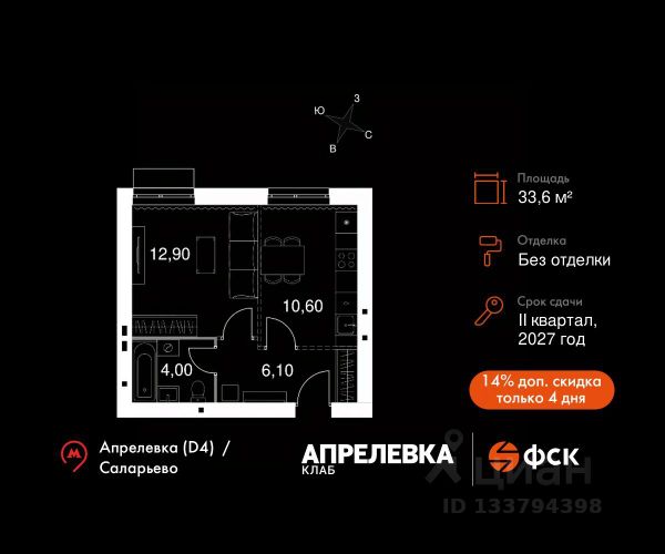 Прямая продажа от застройщика! Загородный жилой комплекс класса Комфорт Плюс. Продаётся 1-к квартира 63 общей площадью 33.4 кв.м на 5-м этаже 5 этажного дома. Без отделки. Расположение комплекса: "Апрелевка Клаб" это жилой комплекс всего в 30 км от Москвы по Киевскому шоссе, где городские удобства гармонично сочетаются с природой. Здесь начинается новая ступень жизни: современная малоэтажная застройка не нарушает живописные виды, а закрытая территория дарит чувство безопасности. Особенности проекта: - Улучшенная отделка МОПов - Социальная инфраструктура в шаговой доступности: муниципальные детский сад и школа, поликлиника - Не просто школа: школа МГИМО - Школа искусств МАРХИ - Всесезонное уникальное благоустройство: от города к природе через призму искусства - Комфортное пространство (спорт, досуг с детьми, работа в удаленном формате с прекрасными видами, место для творчества, тихие места для уединения и размышления) - Отличная транспортная доступность Транспортная доступность: - Метро Филатов Луг и Рассказовка 25 км - МЦД Апрелевка 5 км - МКАД — 30 км - Садовое кольцо — 45 км - Метро в Троицке (открытие в 2030) — 22 км - Ближайшая остановка общ. транспорта "Фрунзевец" 550 м - Ст. м. "Саларьево" 30 мин. на автобусе Внутренняя инфраструктура: Здесь есть хобби на любой вкус, возраст и сезон. Велосипедные, беговые и прогулочные маршруты, уличный workout, летний амфитеатр, спортивная площадка, центральная площадь с сухим фонтаном и игровыми зонами. Крытые развлечения: зона коворкинга, детская комната, кафе. В жилом комплексе будет современная школа на 830 мест и детский сад на 400 мест нового формата: с просторными классами и современным оснащением согласно высоким стандартам. Также на территории будет размещена школа искусств. Дворы без машин, игровые зоны и маршруты для прогулок с навигацией минимизируют риски и создают ощущение защищенности. Вдоль южной границы комплекса протекает река Десна, создавая зону отдыха в природном окружении.