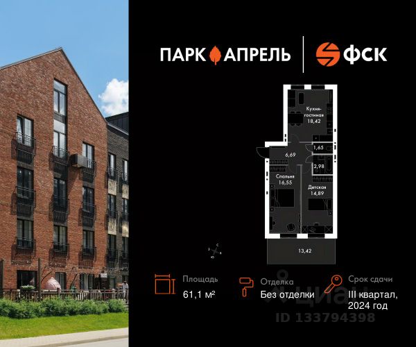 Прямая продажа от застройщика! Загородный жилой комплекс класса Комфорт Плюс. Продаётся 2-к квартира 13 в сданном корпусе общей площадью 54.9 кв.м на 4-м этаже 4 этажного дома. Без отделки. Расположение комплекса: Уникальный жилой комплекс, расположенный в 20 минутах от Москвы по Киевскому шоссе и окруженный первозданным лесом. В Парк Апрель легко наслаждаться жизнью на природе, не отказываясь от привычного уровня комфорта. Это возможно, благодаря уникальному сочетанию преимуществ комплекса. ЖК, окруженный с трех сторон лесом - подарит вам возможность дышать полной грудью и наслаждаться прекрасными видами, а развитая инфраструктура, транспортная доступность и высокий уровень безопасности принесут спокойствие и безмятежность. Транспортная доступность: МКАД в 20 минутах по Киевскому шоссе по современной скоростной трассе. Автобусная остановка в 200-х метрах от дома. 9 маршрутов наземного транспорта, автобусы до станций метро Юго-Западная, Саларьево, Румянцево, Тропарево. 25 минут на МЦД D4 до Киевского вокзала. Внутренняя инфраструктура: Развитая инфраструктура жилого комплекса, включает муниципальную школу, детский сад, торговый центр и другие объекты. Расположение домов тщательно продумано, так что из окон открываются красивые виды на тихие дворики и окружающий лес, а всего за 10 минут на личном или общественном транспорте вы доедете до любой из двадцати школ, поликлиники или современного дворца спорта. Разумеется, в Апрелевке найдутся также торговые комплексы, фитнес-центры и многое другое. Для кровли используется черепица, имеющая отличные тепло- и шумоизоляционные характеристики. Благодаря стенам из керамических на протяжении всего года в доме будет здоровый микроклимат, а облицовка бельгийский кирпичом придает особое очарование фасадам. Вы сможете создать уникальный формат жилья, который подойдет именно вам. Просторная кухня - гостиная, отдельный кабинет для работы, мастер-спальня с гардеробной и ванной - квартира со свободной планировкой позволяет воплотить в жизнь все ваши идеи С трех сторон Парк Апрель окружен лесом и малоэтажной частной застройкой, поблизости отсутствуют вредные производства. В пешей доступности находятся две реки и лесной массив, откуда удачная роза ветров приносит свежий воздух Жителям Парк Апрель доступна развитая инфраструктура Апрелевки: два десятка образовательных учреждений, спортивная школа, современный дворец спорта, поликлиники, фитнес-центры, магазины и торговые комплексы. Все объекты расположены не более, чем в 10 минутах езды на машине. Купить 2-комнатную квартиру в Апрелевке.