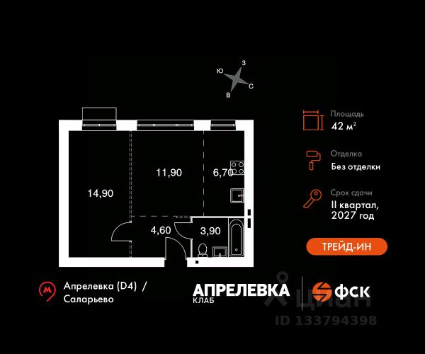Прямая продажа от застройщика! Загородный жилой комплекс класса Комфорт Плюс. Продаётся 2-к квартира номер 149 общей площадью 42 кв.м на 3-м этаже 5 этажного дома. Без отделки. Особенности: - Квартира доступна к покупке в Trade-In. - Линейная планировка - максимальная функциональность и удобство. - Евроформат - просторное и удобное жилье с отличной планировкой. - Гибкая планировка - создайте пространство по своему вкусу. - Просторная мягкая зона - комфорт и уют для отдыха всей семьи. Квартира без отделки. Чистый холст для воплощения интерьера вашей мечты. Расположение комплекса: "Апрелевка Клаб" - это жилой комплекс всего в 30 км от Москвы по Киевскому шоссе, где городские удобства гармонично сочетаются с природой. Здесь начинается новая ступень жизни: современная малоэтажная застройка не нарушает живописные виды, а закрытая территория дарит чувство безопасности. Особенности проекта: - Улучшенная отделка МОПов - Социальная инфраструктура в шаговой доступности: муниципальные детский сад и школа, поликлиника - Не просто школа: школа МГИМО - Школа искусств МАРХИ - Всесезонное уникальное благоустройство: от города к природе через призму искусства - Комфортное пространство (спорт, досуг с детьми, работа в удаленном формате с прекрасными видами, место для творчества, тихие места для уединения и размышления) - Отличная транспортная доступность Транспортная доступность: - Метро Филатов Луг и Рассказовка - 25 км - МЦД Апрелевка - 5 км - МКАД — 30 км - Садовое кольцо — 45 км - Метро в Троицке (открытие в 2030) — 22 км - Ближайшая остановка общ. транспорта "Фрунзевец" - 550 м - Ст. м. "Саларьево" - 30 мин. на автобусе Внутренняя инфраструктура: Здесь есть хобби на любой вкус, возраст и сезон. Велосипедные, беговые и прогулочные маршруты, уличный workout, летний амфитеатр, спортивная площадка, центральная площадь с сухим фонтаном и игровыми зонами. Крытые развлечения: зона коворкинга, детская комната, кафе. В жилом комплексе будет современная школа на 830 мест и детский сад на 400 мест нового формата: с просторными классами и современным оснащением согласно высоким стандартам. Также на территории будет размещена школа искусств. Дворы без машин, игровые зоны и маршруты для прогулок с навигацией минимизируют риски и создают ощущение защищенности. Вдоль южной границы комплекса протекает река Десна, создавая зону отдыха в природном окружении. Цены указаны с учетом скидки. Продам 2-комнатную квартиру 40 м2 (квадратных метров) в Апрелевке.