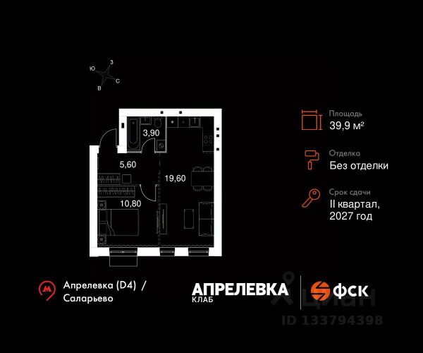 Прямая продажа от застройщика! Загородный жилой комплекс класса Комфорт Плюс. Продаётся 2-к квартира 93 общей площадью 43.1 кв.м на 2-м этаже 5 этажного дома. Без отделки. Расположение комплекса: "Апрелевка Клаб" это жилой комплекс всего в 30 км от Москвы по Киевскому шоссе, где городские удобства гармонично сочетаются с природой. Здесь начинается новая ступень жизни: современная малоэтажная застройка не нарушает живописные виды, а закрытая территория дарит чувство безопасности. Особенности проекта: - Улучшенная отделка МОПов - Социальная инфраструктура в шаговой доступности: муниципальные детский сад и школа, поликлиника - Не просто школа: школа МГИМО - Школа искусств МАРХИ - Всесезонное уникальное благоустройство: от города к природе через призму искусства - Комфортное пространство (спорт, досуг с детьми, работа в удаленном формате с прекрасными видами, место для творчества, тихие места для уединения и размышления) - Отличная транспортная доступность Транспортная доступность: - Метро Филатов Луг и Рассказовка 25 км - МЦД Апрелевка 5 км - МКАД — 30 км - Садовое кольцо — 45 км - Метро в Троицке (открытие в 2030) — 22 км - Ближайшая остановка общ. транспорта "Фрунзевец" 550 м - Ст. м. "Саларьево" 30 мин. на автобусе Внутренняя инфраструктура: Здесь есть хобби на любой вкус, возраст и сезон. Велосипедные, беговые и прогулочные маршруты, уличный workout, летний амфитеатр, спортивная площадка, центральная площадь с сухим фонтаном и игровыми зонами. Крытые развлечения: зона коворкинга, детская комната, кафе. В жилом комплексе будет современная школа на 830 мест и детский сад на 400 мест нового формата: с просторными классами и современным оснащением согласно высоким стандартам. Также на территории будет размещена школа искусств. Дворы без машин, игровые зоны и маршруты для прогулок с навигацией минимизируют риски и создают ощущение защищенности. Вдоль южной границы комплекса протекает река Десна, создавая зону отдыха в природном окружении. Продается 2-комнатная квартира на 2 этаже в Апрелевке.