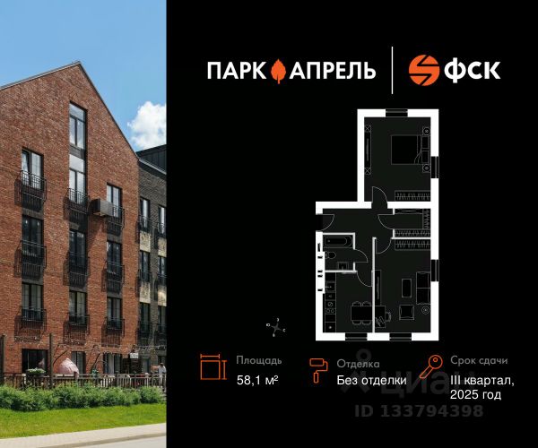 Прямая продажа от застройщика! Загородный жилой комплекс класса Комфорт Плюс. Продаётся 2-к квартира 47 в сданном корпусе общей площадью 56.41 кв.м на 2-м этаже 4 этажного дома. Без отделки. Расположение комплекса: Уникальный жилой комплекс, расположенный в 20 минутах от Москвы по Киевскому шоссе и окруженный первозданным лесом. В Парк Апрель легко наслаждаться жизнью на природе, не отказываясь от привычного уровня комфорта. Это возможно, благодаря уникальному сочетанию преимуществ комплекса. ЖК, окруженный с трех сторон лесом - подарит вам возможность дышать полной грудью и наслаждаться прекрасными видами, а развитая инфраструктура, транспортная доступность и высокий уровень безопасности принесут спокойствие и безмятежность. Транспортная доступность: МКАД в 20 минутах по Киевскому шоссе по современной скоростной трассе. Автобусная остановка в 200-х метрах от дома. 9 маршрутов наземного транспорта, автобусы до станций метро Юго-Западная, Саларьево, Румянцево, Тропарево. 25 минут на МЦД D4 до Киевского вокзала. Внутренняя инфраструктура: Развитая инфраструктура жилого комплекса, включает муниципальную школу, детский сад, торговый центр и другие объекты. Расположение домов тщательно продумано, так что из окон открываются красивые виды на тихие дворики и окружающий лес, а всего за 10 минут на личном или общественном транспорте вы доедете до любой из двадцати школ, поликлиники или современного дворца спорта. Разумеется, в Апрелевке найдутся также торговые комплексы, фитнес-центры и многое другое. Для кровли используется черепица, имеющая отличные тепло- и шумоизоляционные характеристики. Благодаря стенам из керамических на протяжении всего года в доме будет здоровый микроклимат, а облицовка бельгийский кирпичом придает особое очарование фасадам. Вы сможете создать уникальный формат жилья, который подойдет именно вам. Просторная кухня - гостиная, отдельный кабинет для работы, мастер-спальня с гардеробной и ванной - квартира со свободной планировкой позволяет воплотить в жизнь все ваши идеи С трех сторон Парк Апрель окружен лесом и малоэтажной частной застройкой, поблизости отсутствуют вредные производства. В пешей доступности находятся две реки и лесной массив, откуда удачная роза ветров приносит свежий воздух Жителям Парк Апрель доступна развитая инфраструктура Апрелевки: два десятка образовательных учреждений, спортивная школа, современный дворец спорта, поликлиники, фитнес-центры, магазины и торговые комплексы. Все объекты расположены не более, чем в 10 минутах езды на машине. Продается 2-комнатная квартира на 2 этаже в Апрелевке.
