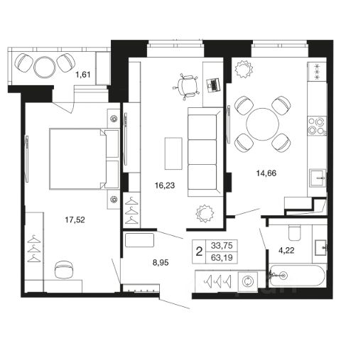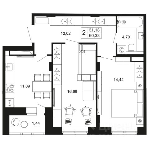 2-комн. квартира в ЖК комфорт-класса "Времена года" на 8 этаже в 9 этажном корпусе 11. Общая площадь: 60.38 кв.м., жилая: 31.13 кв.м. Высота потолков 2.76 м. "Времена года" современный жилой комплекс комфорт-класса, расположенный в тихом и зеленом подмосковном городе Апрелевка, в 1 минуте пешком от станции МЦД-4 "Победа". 1-я очередь уже заселена, сейчас ведется строительство 2-го этапа 2-й очереди, которая будет сдана к 3 кварталу 2025 года. Комплексная застройка территории общей площадью 12,9 Га включает в себя малоэтажные жилые корпуса, собственные детский сад и школу. Первые этажи домов первой очереди и второго этапа второй очереди отведены под социальную инфраструктуру. Корпуса малоэтажные не более 9 этажей. Различные варианты квартир эргономичных планировок от студий до трехкомнатных, площадью от 29,6 до 93,7 м² доступны покупателям. На территории комплекса будет собственный детский сад и школа, в 15 минутах расположен физкультурно-оздоровительный комплекс ""Мелодия"" с бассейном. Недалеко от ЖК находится лес с прудами для прогулок и занятий спортом. Инфраструктура ""Времена года"" включает в себя не только объекты первой необходимости, такие как продуктовые магазины, аптека, салон красоты, кафе, но и детский клуб ""Кот да Винчи"" для самых маленьких жителей. Для удобства жителей предусмотрено достаточное количество парковочных мест и система безопасности ""Безопасный регион"". Кроме того, жители могут воспользоваться развитой инфраструктурой города Апрелевка, всего в 4 минутах езды на электричке либо 10 минутах на автомобиле. Квартиры свободной планировки будут сдаваться без отделки, что позволит обустраивать пространство по своему вкусу. В продаже представлены студии, одно-, двух- и трехкомнатные квартиры различной площади. Также доступны ипотечные программы от различных банков." Дорога от комплекса до Москвы займёт порядка 38 мин (станция БКЛ "Аминьевская"), а до Белорусского вокзала и Тверской улицы — не более 58 минут. Удобный выезд на Киевское и Боровское шоссе, 25 минут на авто до МКАД.
