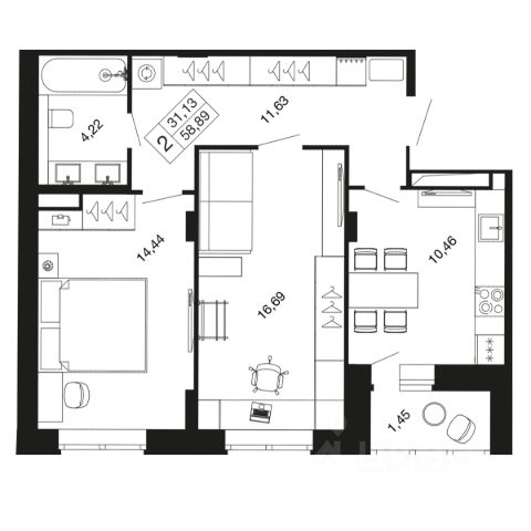 2-комн. квартира в ЖК комфорт-класса "Времена года" на 8 этаже в 9 этажном корпусе 12. Общая площадь: 66.4 кв.м., жилая: 32.19 кв.м. Высота потолков 2.76 м. "Времена года" современный жилой комплекс комфорт-класса, расположенный в тихом и зеленом подмосковном городе Апрелевка, в 1 минуте пешком от станции МЦД-4 "Победа". 1-я очередь уже заселена, сейчас ведется строительство 2-го этапа 2-й очереди, которая будет сдана к 3 кварталу 2025 года. Комплексная застройка территории общей площадью 12,9 Га включает в себя малоэтажные жилые корпуса, собственные детский сад и школу. Первые этажи домов первой очереди и второго этапа второй очереди отведены под социальную инфраструктуру. Корпуса малоэтажные не более 9 этажей. Различные варианты квартир эргономичных планировок от студий до трехкомнатных, площадью от 29,6 до 93,7 м² доступны покупателям. На территории комплекса будет собственный детский сад и школа, в 15 минутах расположен физкультурно-оздоровительный комплекс ""Мелодия"" с бассейном. Недалеко от ЖК находится лес с прудами для прогулок и занятий спортом. Инфраструктура ""Времена года"" включает в себя не только объекты первой необходимости, такие как продуктовые магазины, аптека, салон красоты, кафе, но и детский клуб ""Кот да Винчи"" для самых маленьких жителей. Для удобства жителей предусмотрено достаточное количество парковочных мест и система безопасности ""Безопасный регион"". Кроме того, жители могут воспользоваться развитой инфраструктурой города Апрелевка, всего в 4 минутах езды на электричке либо 10 минутах на автомобиле. Квартиры свободной планировки будут сдаваться без отделки, что позволит обустраивать пространство по своему вкусу. В продаже представлены студии, одно-, двух- и трехкомнатные квартиры различной площади. Также доступны ипотечные программы от различных банков." Дорога от комплекса до Москвы займёт порядка 38 мин (станция БКЛ "Аминьевская"), а до Белорусского вокзала и Тверской улицы — не более 58 минут. Удобный выезд на Киевское и Боровское шоссе, 25 минут на авто до МКАД.