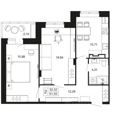 2-комн. квартира в ЖК комфорт-класса "Времена года" на 9 этаже в 9 этажном корпусе 11. Общая площадь: 74.1 кв.м., жилая: 42.59 кв.м. Высота потолков 2.76 м. "Времена года" современный жилой комплекс комфорт-класса, расположенный в тихом и зеленом подмосковном городе Апрелевка, в 1 минуте пешком от станции МЦД-4 "Победа". 1-я очередь уже заселена, сейчас ведется строительство 2-го этапа 2-й очереди, которая будет сдана к 3 кварталу 2025 года. Комплексная застройка территории общей площадью 12,9 Га включает в себя малоэтажные жилые корпуса, собственные детский сад и школу. Первые этажи домов первой очереди и второго этапа второй очереди отведены под социальную инфраструктуру. Корпуса малоэтажные не более 9 этажей. Различные варианты квартир эргономичных планировок от студий до трехкомнатных, площадью от 29,6 до 93,7 м² доступны покупателям. На территории комплекса будет собственный детский сад и школа, в 15 минутах расположен физкультурно-оздоровительный комплекс ""Мелодия"" с бассейном. Недалеко от ЖК находится лес с прудами для прогулок и занятий спортом. Инфраструктура ""Времена года"" включает в себя не только объекты первой необходимости, такие как продуктовые магазины, аптека, салон красоты, кафе, но и детский клуб ""Кот да Винчи"" для самых маленьких жителей. Для удобства жителей предусмотрено достаточное количество парковочных мест и система безопасности ""Безопасный регион"". Кроме того, жители могут воспользоваться развитой инфраструктурой города Апрелевка, всего в 4 минутах езды на электричке либо 10 минутах на автомобиле. Квартиры свободной планировки будут сдаваться без отделки, что позволит обустраивать пространство по своему вкусу. В продаже представлены студии, одно-, двух- и трехкомнатные квартиры различной площади. Также доступны ипотечные программы от различных банков." Дорога от комплекса до Москвы займёт порядка 38 мин (станция БКЛ "Аминьевская"), а до Белорусского вокзала и Тверской улицы — не более 58 минут. Удобный выезд на Киевское и Боровское шоссе, 25 минут на авто до МКАД.