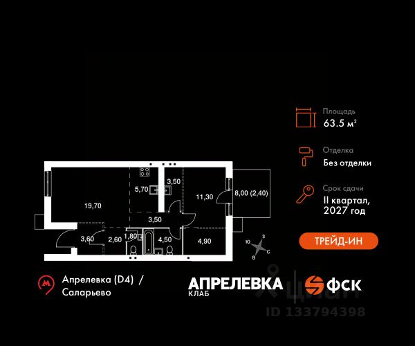 Прямая продажа от застройщика! Загородный жилой комплекс класса Комфорт Плюс. Продаётся 2-к квартира номер 42 общей площадью 42 кв.м на 3-м этаже 5 этажного дома. Без отделки. Особенности: - Квартира доступна к покупке в Trade-In. - Линейная планировка - максимальная функциональность и удобство. - Вид из окна: двор Квартира без отделки. Чистый холст для воплощения интерьера вашей мечты. Расположение комплекса: "Апрелевка Клаб" - это жилой комплекс всего в 30 км от Москвы по Киевскому шоссе, где городские удобства гармонично сочетаются с природой. Здесь начинается новая ступень жизни: современная малоэтажная застройка не нарушает живописные виды, а закрытая территория дарит чувство безопасности. Особенности проекта: - Улучшенная отделка МОПов - Социальная инфраструктура в шаговой доступности: муниципальные детский сад и школа, поликлиника - Не просто школа: школа МГИМО - Школа искусств МАРХИ - Всесезонное уникальное благоустройство: от города к природе через призму искусства - Комфортное пространство (спорт, досуг с детьми, работа в удаленном формате с прекрасными видами, место для творчества, тихие места для уединения и размышления) - Отличная транспортная доступность Транспортная доступность: - Метро Филатов Луг и Рассказовка - 25 км - МЦД Апрелевка - 5 км - МКАД — 30 км - Садовое кольцо — 45 км - Метро в Троицке (открытие в 2030) — 22 км - Ближайшая остановка общ. транспорта "Фрунзевец" - 550 м - Ст. м. "Саларьево" - 30 мин. на автобусе Внутренняя инфраструктура: Здесь есть хобби на любой вкус, возраст и сезон. Велосипедные, беговые и прогулочные маршруты, уличный workout, летний амфитеатр, спортивная площадка, центральная площадь с сухим фонтаном и игровыми зонами. Крытые развлечения: зона коворкинга, детская комната, кафе. В жилом комплексе будет современная школа на 830 мест и детский сад на 400 мест нового формата: с просторными классами и современным оснащением согласно высоким стандартам. Также на территории будет размещена школа искусств. Дворы без машин, игровые зоны и маршруты для прогулок с навигацией минимизируют риски и создают ощущение защищенности. Вдоль южной границы комплекса протекает река Десна, создавая зону отдыха в природном окружении. Цены указаны с учетом скидки. Купить 2-комнатную квартиру от застройщика в Апрелевке.