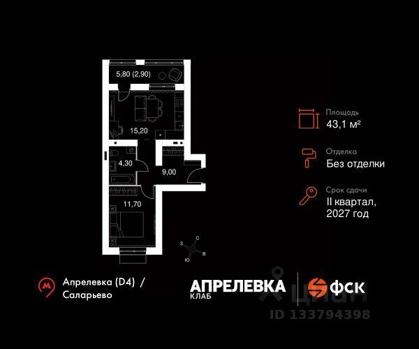 Прямая продажа от застройщика! Загородный жилой комплекс класса Комфорт Плюс. Продаётся 2-к квартира 3 общей площадью 41.7 кв.м на 1-м этаже 5 этажного дома. Без отделки. Расположение комплекса: "Апрелевка Клаб" это жилой комплекс всего в 30 км от Москвы по Киевскому шоссе, где городские удобства гармонично сочетаются с природой. Здесь начинается новая ступень жизни: современная малоэтажная застройка не нарушает живописные виды, а закрытая территория дарит чувство безопасности. Особенности проекта: - Улучшенная отделка МОПов - Социальная инфраструктура в шаговой доступности: муниципальные детский сад и школа, поликлиника - Не просто школа: школа МГИМО - Школа искусств МАРХИ - Всесезонное уникальное благоустройство: от города к природе через призму искусства - Комфортное пространство (спорт, досуг с детьми, работа в удаленном формате с прекрасными видами, место для творчества, тихие места для уединения и размышления) - Отличная транспортная доступность Транспортная доступность: - Метро Филатов Луг и Рассказовка 25 км - МЦД Апрелевка 5 км - МКАД — 30 км - Садовое кольцо — 45 км - Метро в Троицке (открытие в 2030) — 22 км - Ближайшая остановка общ. транспорта "Фрунзевец" 550 м - Ст. м. "Саларьево" 30 мин. на автобусе Внутренняя инфраструктура: Здесь есть хобби на любой вкус, возраст и сезон. Велосипедные, беговые и прогулочные маршруты, уличный workout, летний амфитеатр, спортивная площадка, центральная площадь с сухим фонтаном и игровыми зонами. Крытые развлечения: зона коворкинга, детская комната, кафе. В жилом комплексе будет современная школа на 830 мест и детский сад на 400 мест нового формата: с просторными классами и современным оснащением согласно высоким стандартам. Также на территории будет размещена школа искусств. Дворы без машин, игровые зоны и маршруты для прогулок с навигацией минимизируют риски и создают ощущение защищенности. Вдоль южной границы комплекса протекает река Десна, создавая зону отдыха в природном окружении. Купить 2-комнатную квартиру от застройщика в Апрелевке.