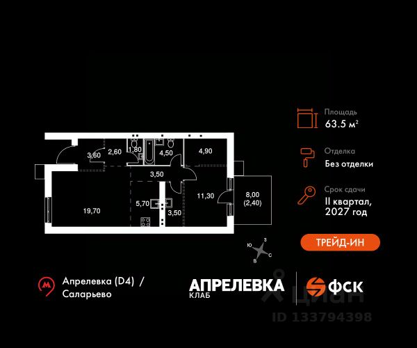 Прямая продажа от застройщика! Загородный жилой комплекс класса Комфорт Плюс. Продаётся 2-к квартира номер 167 общей площадью 42 кв.м на 5-м этаже 5 этажного дома. Без отделки. Особенности: - Квартира доступна к покупке в Trade-In. - Линейная планировка - максимальная функциональность и удобство. - Вид из окна: двор Квартира без отделки. Чистый холст для воплощения интерьера вашей мечты. Расположение комплекса: "Апрелевка Клаб" - это жилой комплекс всего в 30 км от Москвы по Киевскому шоссе, где городские удобства гармонично сочетаются с природой. Здесь начинается новая ступень жизни: современная малоэтажная застройка не нарушает живописные виды, а закрытая территория дарит чувство безопасности. Особенности проекта: - Улучшенная отделка МОПов - Социальная инфраструктура в шаговой доступности: муниципальные детский сад и школа, поликлиника - Не просто школа: школа МГИМО - Школа искусств МАРХИ - Всесезонное уникальное благоустройство: от города к природе через призму искусства - Комфортное пространство (спорт, досуг с детьми, работа в удаленном формате с прекрасными видами, место для творчества, тихие места для уединения и размышления) - Отличная транспортная доступность Транспортная доступность: - Метро Филатов Луг и Рассказовка - 25 км - МЦД Апрелевка - 5 км - МКАД — 30 км - Садовое кольцо — 45 км - Метро в Троицке (открытие в 2030) — 22 км - Ближайшая остановка общ. транспорта "Фрунзевец" - 550 м - Ст. м. "Саларьево" - 30 мин. на автобусе Внутренняя инфраструктура: Здесь есть хобби на любой вкус, возраст и сезон. Велосипедные, беговые и прогулочные маршруты, уличный workout, летний амфитеатр, спортивная площадка, центральная площадь с сухим фонтаном и игровыми зонами. Крытые развлечения: зона коворкинга, детская комната, кафе. В жилом комплексе будет современная школа на 830 мест и детский сад на 400 мест нового формата: с просторными классами и современным оснащением согласно высоким стандартам. Также на территории будет размещена школа искусств. Дворы без машин, игровые зоны и маршруты для прогулок с навигацией минимизируют риски и создают ощущение защищенности. Вдоль южной границы комплекса протекает река Десна, создавая зону отдыха в природном окружении. Цены указаны с учетом скидки.