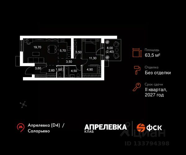 Прямая продажа от застройщика! Загородный жилой комплекс класса Комфорт Плюс. Продаётся 2-к квартира 93 общей площадью 43.1 кв.м на 2-м этаже 5 этажного дома. Без отделки. Расположение комплекса: "Апрелевка Клаб" это жилой комплекс всего в 30 км от Москвы по Киевскому шоссе, где городские удобства гармонично сочетаются с природой. Здесь начинается новая ступень жизни: современная малоэтажная застройка не нарушает живописные виды, а закрытая территория дарит чувство безопасности. Особенности проекта: - Улучшенная отделка МОПов - Социальная инфраструктура в шаговой доступности: муниципальные детский сад и школа, поликлиника - Не просто школа: школа МГИМО - Школа искусств МАРХИ - Всесезонное уникальное благоустройство: от города к природе через призму искусства - Комфортное пространство (спорт, досуг с детьми, работа в удаленном формате с прекрасными видами, место для творчества, тихие места для уединения и размышления) - Отличная транспортная доступность Транспортная доступность: - Метро Филатов Луг и Рассказовка 25 км - МЦД Апрелевка 5 км - МКАД — 30 км - Садовое кольцо — 45 км - Метро в Троицке (открытие в 2030) — 22 км - Ближайшая остановка общ. транспорта "Фрунзевец" 550 м - Ст. м. "Саларьево" 30 мин. на автобусе Внутренняя инфраструктура: Здесь есть хобби на любой вкус, возраст и сезон. Велосипедные, беговые и прогулочные маршруты, уличный workout, летний амфитеатр, спортивная площадка, центральная площадь с сухим фонтаном и игровыми зонами. Крытые развлечения: зона коворкинга, детская комната, кафе. В жилом комплексе будет современная школа на 830 мест и детский сад на 400 мест нового формата: с просторными классами и современным оснащением согласно высоким стандартам. Также на территории будет размещена школа искусств. Дворы без машин, игровые зоны и маршруты для прогулок с навигацией минимизируют риски и создают ощущение защищенности. Вдоль южной границы комплекса протекает река Десна, создавая зону отдыха в природном окружении. Купить 2-комнатную квартиру в Апрелевке.