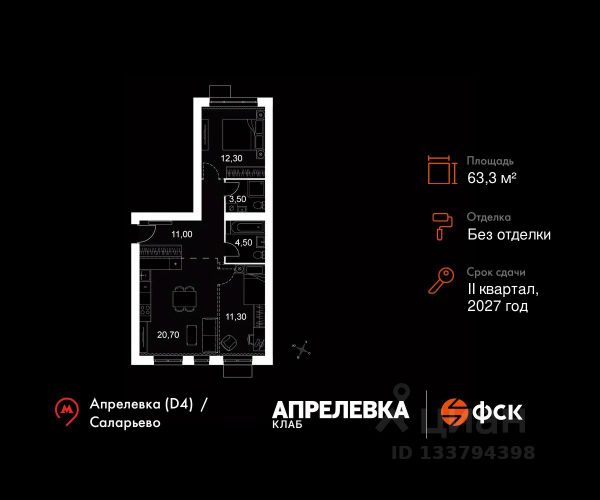 Прямая продажа от застройщика! Загородный жилой комплекс класса Комфорт Плюс. Продаётся 3-к квартира 125 общей площадью 68.8 кв.м на 5-м этаже 5 этажного дома. Без отделки. Расположение комплекса: "Апрелевка Клаб" это жилой комплекс всего в 30 км от Москвы по Киевскому шоссе, где городские удобства гармонично сочетаются с природой. Здесь начинается новая ступень жизни: современная малоэтажная застройка не нарушает живописные виды, а закрытая территория дарит чувство безопасности. Особенности проекта: - Улучшенная отделка МОПов - Социальная инфраструктура в шаговой доступности: муниципальные детский сад и школа, поликлиника - Не просто школа: школа МГИМО - Школа искусств МАРХИ - Всесезонное уникальное благоустройство: от города к природе через призму искусства - Комфортное пространство (спорт, досуг с детьми, работа в удаленном формате с прекрасными видами, место для творчества, тихие места для уединения и размышления) - Отличная транспортная доступность Транспортная доступность: - Метро Филатов Луг и Рассказовка 25 км - МЦД Апрелевка 5 км - МКАД — 30 км - Садовое кольцо — 45 км - Метро в Троицке (открытие в 2030) — 22 км - Ближайшая остановка общ. транспорта "Фрунзевец" 550 м - Ст. м. "Саларьево" 30 мин. на автобусе Внутренняя инфраструктура: Здесь есть хобби на любой вкус, возраст и сезон. Велосипедные, беговые и прогулочные маршруты, уличный workout, летний амфитеатр, спортивная площадка, центральная площадь с сухим фонтаном и игровыми зонами. Крытые развлечения: зона коворкинга, детская комната, кафе. В жилом комплексе будет современная школа на 830 мест и детский сад на 400 мест нового формата: с просторными классами и современным оснащением согласно высоким стандартам. Также на территории будет размещена школа искусств. Дворы без машин, игровые зоны и маршруты для прогулок с навигацией минимизируют риски и создают ощущение защищенности. Вдоль южной границы комплекса протекает река Десна, создавая зону отдыха в природном окружении.