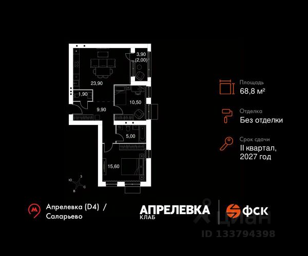 Прямая продажа от застройщика! Загородный жилой комплекс класса Комфорт Плюс. Продаётся 3-к квартира 125 общей площадью 68.8 кв.м на 5-м этаже 5 этажного дома. Без отделки. Расположение комплекса: "Апрелевка Клаб" это жилой комплекс всего в 30 км от Москвы по Киевскому шоссе, где городские удобства гармонично сочетаются с природой. Здесь начинается новая ступень жизни: современная малоэтажная застройка не нарушает живописные виды, а закрытая территория дарит чувство безопасности. Особенности проекта: - Улучшенная отделка МОПов - Социальная инфраструктура в шаговой доступности: муниципальные детский сад и школа, поликлиника - Не просто школа: школа МГИМО - Школа искусств МАРХИ - Всесезонное уникальное благоустройство: от города к природе через призму искусства - Комфортное пространство (спорт, досуг с детьми, работа в удаленном формате с прекрасными видами, место для творчества, тихие места для уединения и размышления) - Отличная транспортная доступность Транспортная доступность: - Метро Филатов Луг и Рассказовка 25 км - МЦД Апрелевка 5 км - МКАД — 30 км - Садовое кольцо — 45 км - Метро в Троицке (открытие в 2030) — 22 км - Ближайшая остановка общ. транспорта "Фрунзевец" 550 м - Ст. м. "Саларьево" 30 мин. на автобусе Внутренняя инфраструктура: Здесь есть хобби на любой вкус, возраст и сезон. Велосипедные, беговые и прогулочные маршруты, уличный workout, летний амфитеатр, спортивная площадка, центральная площадь с сухим фонтаном и игровыми зонами. Крытые развлечения: зона коворкинга, детская комната, кафе. В жилом комплексе будет современная школа на 830 мест и детский сад на 400 мест нового формата: с просторными классами и современным оснащением согласно высоким стандартам. Также на территории будет размещена школа искусств. Дворы без машин, игровые зоны и маршруты для прогулок с навигацией минимизируют риски и создают ощущение защищенности. Вдоль южной границы комплекса протекает река Десна, создавая зону отдыха в природном окружении.