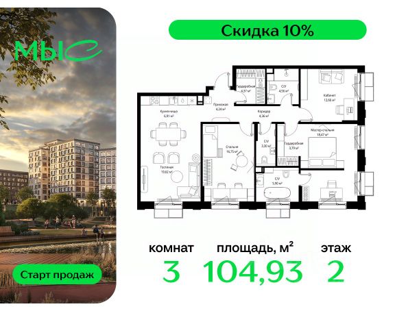 Прямая продажа от застройщика! Загородный жилой комплекс класса Комфорт Плюс. Продаётся 3-к квартира номер 89 общей площадью 106.2 кв.м на 5-м этаже 5 этажного дома. Без отделки. Особенности: - Квартира доступна к покупке в Trade-In. - Распашная планировка - отличное сочетание удобства и свободы. - Увеличенное число окон - Душ помимо ванной - дополнительное удобство для вашей семьи. - Евроформат - просторное и удобное жилье с отличной планировкой. - Гибкая планировка - создайте пространство по своему вкусу. - Двухуровневая квартира - пространство и стиль в одном. - Просторная мягкая зона - комфорт и уют для отдыха всей семьи. - Гардеробная - удобство для хранения и организации вещей. - Терраса - место для загара и вечерних посиделок. - Вид из окна: двор - Вид из окна на шоссе Квартира без отделки. Чистый холст для воплощения интерьера вашей мечты. Расположение комплекса: "Апрелевка Клаб" - это жилой комплекс всего в 30 км от Москвы по Киевскому шоссе, где городские удобства гармонично сочетаются с природой. Здесь начинается новая ступень жизни: современная малоэтажная застройка не нарушает живописные виды, а закрытая территория дарит чувство безопасности. Особенности проекта: - Улучшенная отделка МОПов - Социальная инфраструктура в шаговой доступности: муниципальные детский сад и школа, поликлиника - Не просто школа: школа МГИМО - Школа искусств МАРХИ - Всесезонное уникальное благоустройство: от города к природе через призму искусства - Комфортное пространство (спорт, досуг с детьми, работа в удаленном формате с прекрасными видами, место для творчества, тихие места для уединения и размышления) - Отличная транспортная доступность Транспортная доступность: - Метро Филатов Луг и Рассказовка - 25 км - МЦД Апрелевка - 5 км - МКАД — 30 км - Садовое кольцо — 45 км - Метро в Троицке (открытие в 2030) — 22 км - Ближайшая остановка общ. транспорта "Фрунзевец" - 550 м - Ст. м. "Саларьево" - 30 мин. на автобусе Внутренняя инфраструктура: Здесь есть хобби на любой вкус, возраст и сезон. Велосипедные, беговые и прогулочные маршруты, уличный workout, летний амфитеатр, спортивная площадка, центральная площадь с сухим фонтаном и игровыми зонами. Крытые развлечения: зона коворкинга, детская комната, кафе. В жилом комплексе будет современная школа на 830 мест и детский сад на 400 мест нового формата: с просторными классами и современным оснащением согласно высоким стандартам. Также на территории будет размещена школа искусств. Дворы без машин, игровые зоны и маршруты для прогулок с навигацией минимизируют риски и создают ощущение защищенности. Вдоль южной границы комплекса протекает река Десна, создавая зону отдыха в природном окружении. Цены указаны с учетом скидки. Продам 3-комнатную квартиру в новостройке без отделки в Апрелевке.