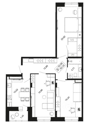 3-комн. квартира в ЖК комфорт-класса "Времена года" на 4 этаже в 9 этажном корпусе 11. Общая площадь: 82.45 кв.м., жилая: 52.88 кв.м. Высота потолков 2.76 м. "Времена года" современный жилой комплекс комфорт-класса, расположенный в тихом и зеленом подмосковном городе Апрелевка, в 1 минуте пешком от станции МЦД-4 "Победа". 1-я очередь уже заселена, сейчас ведется строительство 2-го этапа 2-й очереди, которая будет сдана к 3 кварталу 2025 года. Комплексная застройка территории общей площадью 12,9 Га включает в себя малоэтажные жилые корпуса, собственные детский сад и школу. Первые этажи домов первой очереди и второго этапа второй очереди отведены под социальную инфраструктуру. Корпуса малоэтажные не более 9 этажей. Различные варианты квартир эргономичных планировок от студий до трехкомнатных, площадью от 29,6 до 93,7 м² доступны покупателям. На территории комплекса будет собственный детский сад и школа, в 15 минутах расположен физкультурно-оздоровительный комплекс ""Мелодия"" с бассейном. Недалеко от ЖК находится лес с прудами для прогулок и занятий спортом. Инфраструктура ""Времена года"" включает в себя не только объекты первой необходимости, такие как продуктовые магазины, аптека, салон красоты, кафе, но и детский клуб ""Кот да Винчи"" для самых маленьких жителей. Для удобства жителей предусмотрено достаточное количество парковочных мест и система безопасности ""Безопасный регион"". Кроме того, жители могут воспользоваться развитой инфраструктурой города Апрелевка, всего в 4 минутах езды на электричке либо 10 минутах на автомобиле. Квартиры свободной планировки будут сдаваться без отделки, что позволит обустраивать пространство по своему вкусу. В продаже представлены студии, одно-, двух- и трехкомнатные квартиры различной площади. Также доступны ипотечные программы от различных банков." Дорога от комплекса до Москвы займёт порядка 38 мин (станция БКЛ "Аминьевская"), а до Белорусского вокзала и Тверской улицы — не более 58 минут. Удобный выезд на Киевское и Боровское шоссе, 25 минут на авто до МКАД.