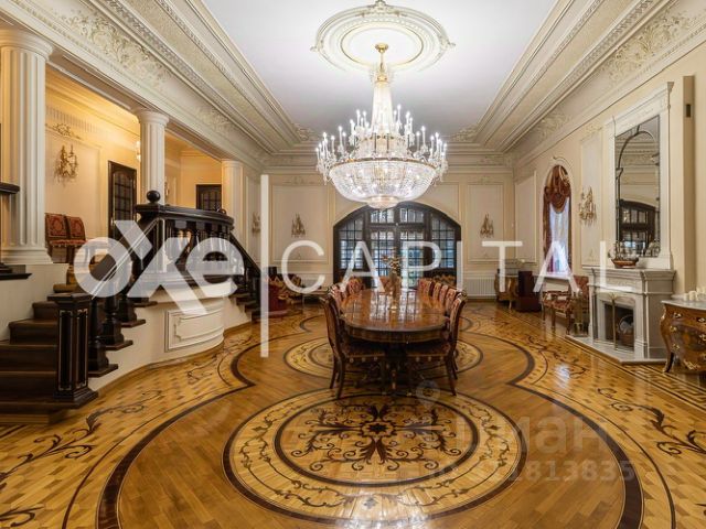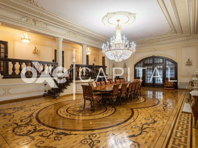 В коттеджном поселке "Фрунзевец" , на 49 сотках собственником продается стилизованная роскошная усадьба 1014 м кв,м, состоящая из основного 3х этажного дома 649 м2 , выполненного в едином архитектурном решении по авторскому проекту, с удобной планировкой для большой семьи и гостей. Архитектура дома и использование в отделке исключительно дорогих и качественных материалов создает атмосферу представительной роскоши, дом полностью обставлен брендовой итальянской мебелью. Все окна дома открывают уникальный вид на прекрасный парк с фонтаном. Основной дом: гостиная с камином, кухня-столовая, 5 спален, 5 с/у, кабинет, детская комната, зимний сад, бильярдная, сауна с комнатой отдыха, бассейн, фитнес зал. Цоколь: сейф для хранения оружия и ценных вещей, кладовые помещения со стеллажами и шкафами для хранения зимней одежды, котельная, хоз.помещения; 1 этаж: холл, кухня-столовая, гостиная с камином, зимним садом и выходом на просторную террасу 40 м.кв, тренажерный зал, с/у; 2 этаж: 2 спальни, кабинет, гардеробная, с/у; 3 этаж: мастер-спальня, с/у (джакузи), кабинет, коктейль бар, гардеробная, прачечная. СПА-зона: 1 этаж: сауна, душ,бассейн, комната отдыха с кухней и камином, сан узел ; 2 этаж: биллиардный зал, 2 гостевые спальни .На участке расположено 2х этажное здание 157 м. кв. : 1 ый этаж - гараж на 5 м/м с мойкой ; 2ой этаж : квартира для персонала (4 комнаты, кухня, с/у), также имеется отдельно стоящее 2х этажное здание банкетного зала 160 м.кв. : 1 ый этаж - гараж на 2 м/м и складские помещения , на втором этаже обустроен банкетный зал на 30 человек с кухней и с/у. На участке построен зимний домик-беседка 40 кв.м., отделана деревом внутри для проведения барбекю с кухней-столовой, телевизором и камином. На участке располагается собственная часовня 8 м кв с религиозными росписями профессиональными художниками и мозаикой , все дополнительные строения имеют газовое отопление . Центральное кондиционирование в доме ,