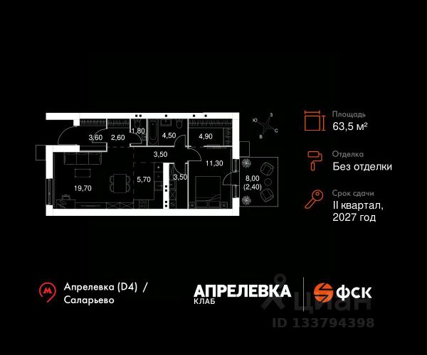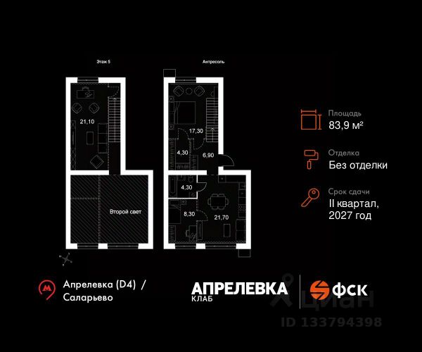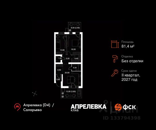 Прямая продажа от застройщика! Загородный жилой комплекс класса Комфорт Плюс. Продаётся 4-к квартира 71 общей площадью 81 кв.м на 2-м этаже 5 этажного дома. Без отделки. Расположение комплекса: "Апрелевка Клаб" это жилой комплекс всего в 30 км от Москвы по Киевскому шоссе, где городские удобства гармонично сочетаются с природой. Здесь начинается новая ступень жизни: современная малоэтажная застройка не нарушает живописные виды, а закрытая территория дарит чувство безопасности. Особенности проекта: - Улучшенная отделка МОПов - Социальная инфраструктура в шаговой доступности: муниципальные детский сад и школа, поликлиника - Не просто школа: школа МГИМО - Школа искусств МАРХИ - Всесезонное уникальное благоустройство: от города к природе через призму искусства - Комфортное пространство (спорт, досуг с детьми, работа в удаленном формате с прекрасными видами, место для творчества, тихие места для уединения и размышления) - Отличная транспортная доступность Транспортная доступность: - Метро Филатов Луг и Рассказовка 25 км - МЦД Апрелевка 5 км - МКАД — 30 км - Садовое кольцо — 45 км - Метро в Троицке (открытие в 2030) — 22 км - Ближайшая остановка общ. транспорта "Фрунзевец" 550 м - Ст. м. "Саларьево" 30 мин. на автобусе Внутренняя инфраструктура: Здесь есть хобби на любой вкус, возраст и сезон. Велосипедные, беговые и прогулочные маршруты, уличный workout, летний амфитеатр, спортивная площадка, центральная площадь с сухим фонтаном и игровыми зонами. Крытые развлечения: зона коворкинга, детская комната, кафе. В жилом комплексе будет современная школа на 830 мест и детский сад на 400 мест нового формата: с просторными классами и современным оснащением согласно высоким стандартам. Также на территории будет размещена школа искусств. Дворы без машин, игровые зоны и маршруты для прогулок с навигацией минимизируют риски и создают ощущение защищенности. Вдоль южной границы комплекса протекает река Десна, создавая зону отдыха в природном окружении. Квартира элитные в Апрелевке.