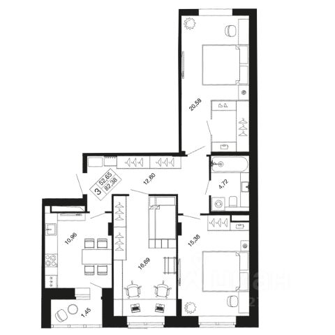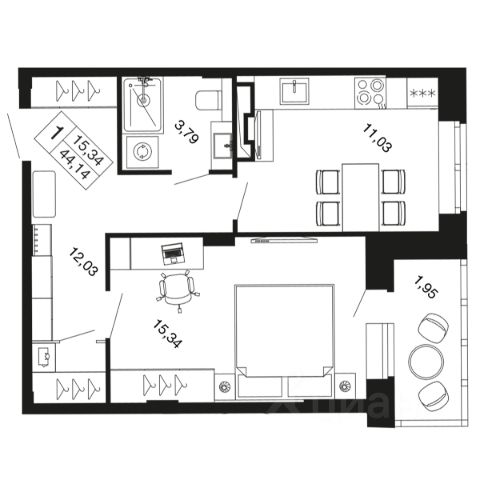 1-комн. квартира в ЖК комфорт-класса "Времена года" на 7 этаже в 9 этажном корпусе 2. Общая площадь: 43 кв.м., жилая: 16.50 кв.м. Высота потолков 2.76 м. "Времена года" современный жилой комплекс комфорт-класса, расположенный в тихом и зеленом подмосковном городе Апрелевка, в 1 минуте пешком от станции МЦД-4 "Победа". 1-я очередь уже заселена, сейчас ведется строительство 2-го этапа 2-й очереди, которая будет сдана к 3 кварталу 2025 года. Комплексная застройка территории общей площадью 12,9 Га включает в себя малоэтажные жилые корпуса, собственные детский сад и школу. Первые этажи домов первой очереди и второго этапа второй очереди отведены под социальную инфраструктуру. Корпуса малоэтажные не более 9 этажей. Различные варианты квартир эргономичных планировок от студий до трехкомнатных, площадью от 29,6 до 93,7 м² доступны покупателям. На территории комплекса будет собственный детский сад и школа, в 15 минутах расположен физкультурно-оздоровительный комплекс ""Мелодия"" с бассейном. Недалеко от ЖК находится лес с прудами для прогулок и занятий спортом. Инфраструктура ""Времена года"" включает в себя не только объекты первой необходимости, такие как продуктовые магазины, аптека, салон красоты, кафе, но и детский клуб ""Кот да Винчи"" для самых маленьких жителей. Для удобства жителей предусмотрено достаточное количество парковочных мест и система безопасности ""Безопасный регион"". Кроме того, жители могут воспользоваться развитой инфраструктурой города Апрелевка, всего в 4 минутах езды на электричке либо 10 минутах на автомобиле. Квартиры свободной планировки будут сдаваться без отделки, что позволит обустраивать пространство по своему вкусу. В продаже представлены студии, одно-, двух- и трехкомнатные квартиры различной площади. Также доступны ипотечные программы от различных банков." Дорога от комплекса до Москвы займёт порядка 38 мин (станция БКЛ "Аминьевская"), а до Белорусского вокзала и Тверской улицы — не более 58 минут. Удобный выезд на Киевское и Боровское шоссе, 25 минут на авто до МКАД.