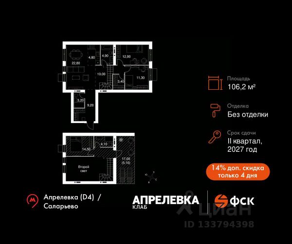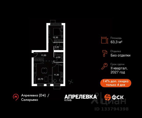 Прямая продажа от застройщика! Загородный жилой комплекс класса Комфорт Плюс. Продаётся 1-к квартира 63 общей площадью 33.4 кв.м на 5-м этаже 5 этажного дома. Без отделки. Расположение комплекса: "Апрелевка Клаб" это жилой комплекс всего в 30 км от Москвы по Киевскому шоссе, где городские удобства гармонично сочетаются с природой. Здесь начинается новая ступень жизни: современная малоэтажная застройка не нарушает живописные виды, а закрытая территория дарит чувство безопасности. Особенности проекта: - Улучшенная отделка МОПов - Социальная инфраструктура в шаговой доступности: муниципальные детский сад и школа, поликлиника - Не просто школа: школа МГИМО - Школа искусств МАРХИ - Всесезонное уникальное благоустройство: от города к природе через призму искусства - Комфортное пространство (спорт, досуг с детьми, работа в удаленном формате с прекрасными видами, место для творчества, тихие места для уединения и размышления) - Отличная транспортная доступность Транспортная доступность: - Метро Филатов Луг и Рассказовка 25 км - МЦД Апрелевка 5 км - МКАД — 30 км - Садовое кольцо — 45 км - Метро в Троицке (открытие в 2030) — 22 км - Ближайшая остановка общ. транспорта "Фрунзевец" 550 м - Ст. м. "Саларьево" 30 мин. на автобусе Внутренняя инфраструктура: Здесь есть хобби на любой вкус, возраст и сезон. Велосипедные, беговые и прогулочные маршруты, уличный workout, летний амфитеатр, спортивная площадка, центральная площадь с сухим фонтаном и игровыми зонами. Крытые развлечения: зона коворкинга, детская комната, кафе. В жилом комплексе будет современная школа на 830 мест и детский сад на 400 мест нового формата: с просторными классами и современным оснащением согласно высоким стандартам. Также на территории будет размещена школа искусств. Дворы без машин, игровые зоны и маршруты для прогулок с навигацией минимизируют риски и создают ощущение защищенности. Вдоль южной границы комплекса протекает река Десна, создавая зону отдыха в природном окружении. Продается квартира в ипотеку в Апрелевке.