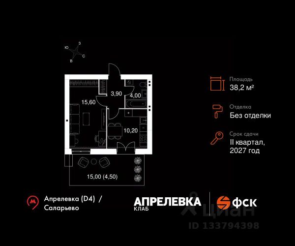 Прямая продажа от застройщика! Загородный жилой комплекс класса Комфорт Плюс. Продаётся 2-к квартира 56 общей площадью 39.9 кв.м на 4-м этаже 5 этажного дома. Без отделки. Расположение комплекса: "Апрелевка Клаб" это жилой комплекс всего в 30 км от Москвы по Киевскому шоссе, где городские удобства гармонично сочетаются с природой. Здесь начинается новая ступень жизни: современная малоэтажная застройка не нарушает живописные виды, а закрытая территория дарит чувство безопасности. Особенности проекта: - Улучшенная отделка МОПов - Социальная инфраструктура в шаговой доступности: муниципальные детский сад и школа, поликлиника - Не просто школа: школа МГИМО - Школа искусств МАРХИ - Всесезонное уникальное благоустройство: от города к природе через призму искусства - Комфортное пространство (спорт, досуг с детьми, работа в удаленном формате с прекрасными видами, место для творчества, тихие места для уединения и размышления) - Отличная транспортная доступность Транспортная доступность: - Метро Филатов Луг и Рассказовка 25 км - МЦД Апрелевка 5 км - МКАД — 30 км - Садовое кольцо — 45 км - Метро в Троицке (открытие в 2030) — 22 км - Ближайшая остановка общ. транспорта "Фрунзевец" 550 м - Ст. м. "Саларьево" 30 мин. на автобусе Внутренняя инфраструктура: Здесь есть хобби на любой вкус, возраст и сезон. Велосипедные, беговые и прогулочные маршруты, уличный workout, летний амфитеатр, спортивная площадка, центральная площадь с сухим фонтаном и игровыми зонами. Крытые развлечения: зона коворкинга, детская комната, кафе. В жилом комплексе будет современная школа на 830 мест и детский сад на 400 мест нового формата: с просторными классами и современным оснащением согласно высоким стандартам. Также на территории будет размещена школа искусств. Дворы без машин, игровые зоны и маршруты для прогулок с навигацией минимизируют риски и создают ощущение защищенности. Вдоль южной границы комплекса протекает река Десна, создавая зону отдыха в природном окружении. Купить квартиру в новостройке комфорт класса в Апрелевке.