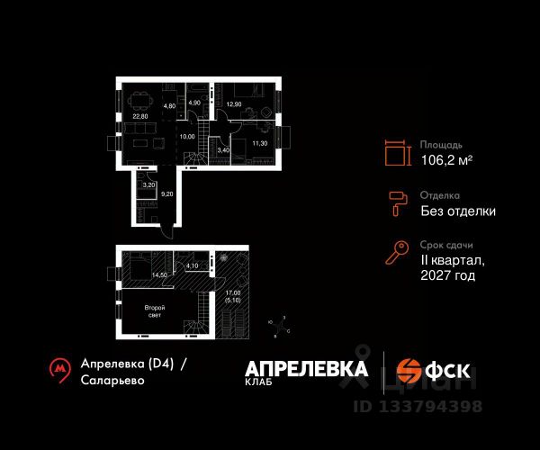Прямая продажа от застройщика! Загородный жилой комплекс класса Комфорт Плюс. Продаётся 1-к квартира 86 общей площадью 33.6 кв.м на 5-м этаже 5 этажного дома. Без отделки. Расположение комплекса: "Апрелевка Клаб" это жилой комплекс всего в 30 км от Москвы по Киевскому шоссе, где городские удобства гармонично сочетаются с природой. Здесь начинается новая ступень жизни: современная малоэтажная застройка не нарушает живописные виды, а закрытая территория дарит чувство безопасности. Особенности проекта: - Улучшенная отделка МОПов - Социальная инфраструктура в шаговой доступности: муниципальные детский сад и школа, поликлиника - Не просто школа: школа МГИМО - Школа искусств МАРХИ - Всесезонное уникальное благоустройство: от города к природе через призму искусства - Комфортное пространство (спорт, досуг с детьми, работа в удаленном формате с прекрасными видами, место для творчества, тихие места для уединения и размышления) - Отличная транспортная доступность Транспортная доступность: - Метро Филатов Луг и Рассказовка 25 км - МЦД Апрелевка 5 км - МКАД — 30 км - Садовое кольцо — 45 км - Метро в Троицке (открытие в 2030) — 22 км - Ближайшая остановка общ. транспорта "Фрунзевец" 550 м - Ст. м. "Саларьево" 30 мин. на автобусе Внутренняя инфраструктура: Здесь есть хобби на любой вкус, возраст и сезон. Велосипедные, беговые и прогулочные маршруты, уличный workout, летний амфитеатр, спортивная площадка, центральная площадь с сухим фонтаном и игровыми зонами. Крытые развлечения: зона коворкинга, детская комната, кафе. В жилом комплексе будет современная школа на 830 мест и детский сад на 400 мест нового формата: с просторными классами и современным оснащением согласно высоким стандартам. Также на территории будет размещена школа искусств. Дворы без машин, игровые зоны и маршруты для прогулок с навигацией минимизируют риски и создают ощущение защищенности. Вдоль южной границы комплекса протекает река Десна, создавая зону отдыха в природном окружении. Квартира в ипотеку в новостройке от застройщиков в Апрелевке.