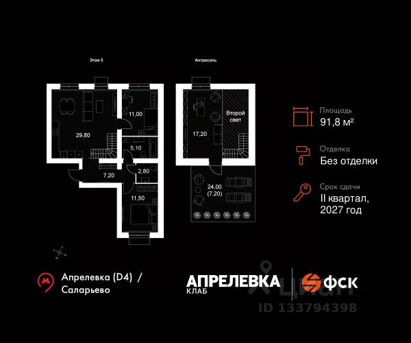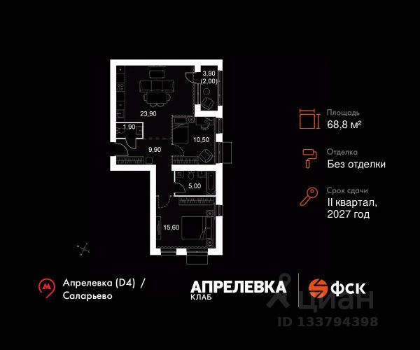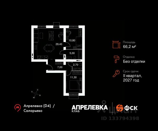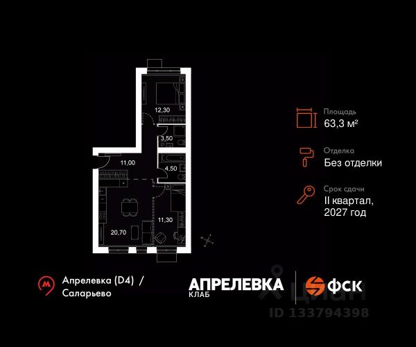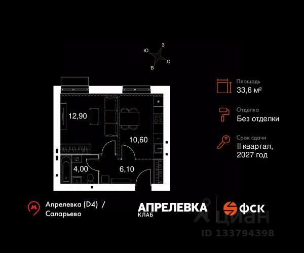Прямая продажа от застройщика! Загородный жилой комплекс класса Комфорт Плюс. Продаётся 1-к квартира 67 общей площадью 33.6 кв.м на 2-м этаже 5 этажного дома. Без отделки. Расположение комплекса: "Апрелевка Клаб" это жилой комплекс всего в 30 км от Москвы по Киевскому шоссе, где городские удобства гармонично сочетаются с природой. Здесь начинается новая ступень жизни: современная малоэтажная застройка не нарушает живописные виды, а закрытая территория дарит чувство безопасности. Особенности проекта: - Улучшенная отделка МОПов - Социальная инфраструктура в шаговой доступности: муниципальные детский сад и школа, поликлиника - Не просто школа: школа МГИМО - Школа искусств МАРХИ - Всесезонное уникальное благоустройство: от города к природе через призму искусства - Комфортное пространство (спорт, досуг с детьми, работа в удаленном формате с прекрасными видами, место для творчества, тихие места для уединения и размышления) - Отличная транспортная доступность Транспортная доступность: - Метро Филатов Луг и Рассказовка 25 км - МЦД Апрелевка 5 км - МКАД — 30 км - Садовое кольцо — 45 км - Метро в Троицке (открытие в 2030) — 22 км - Ближайшая остановка общ. транспорта "Фрунзевец" 550 м - Ст. м. "Саларьево" 30 мин. на автобусе Внутренняя инфраструктура: Здесь есть хобби на любой вкус, возраст и сезон. Велосипедные, беговые и прогулочные маршруты, уличный workout, летний амфитеатр, спортивная площадка, центральная площадь с сухим фонтаном и игровыми зонами. Крытые развлечения: зона коворкинга, детская комната, кафе. В жилом комплексе будет современная школа на 830 мест и детский сад на 400 мест нового формата: с просторными классами и современным оснащением согласно высоким стандартам. Также на территории будет размещена школа искусств. Дворы без машин, игровые зоны и маршруты для прогулок с навигацией минимизируют риски и создают ощущение защищенности. Вдоль южной границы комплекса протекает река Десна, создавая зону отдыха в природном окружении.