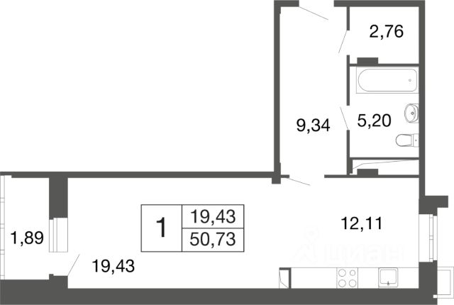 квартира-студия в ЖК комфорт-класса "Времена года" на 1 этаже в 9 этажном корпусе 12. Общая площадь: 50.73 кв.м., жилая: 19.43 кв.м. Высота потолков 2.76 м. "Времена года" современный жилой комплекс комфорт-класса, расположенный в тихом и зеленом подмосковном городе Апрелевка, в 1 минуте пешком от станции МЦД-4 "Победа". 1-я очередь уже заселена, сейчас ведется строительство 2-го этапа 2-й очереди, которая будет сдана к 3 кварталу 2025 года. Комплексная застройка территории общей площадью 12,9 Га включает в себя малоэтажные жилые корпуса, собственные детский сад и школу. Первые этажи домов первой очереди и второго этапа второй очереди отведены под социальную инфраструктуру. Корпуса малоэтажные не более 9 этажей. Различные варианты квартир эргономичных планировок от студий до трехкомнатных, площадью от 29,6 до 93,7 м² доступны покупателям. На территории комплекса будет собственный детский сад и школа, в 15 минутах расположен физкультурно-оздоровительный комплекс ""Мелодия"" с бассейном. Недалеко от ЖК находится лес с прудами для прогулок и занятий спортом. Инфраструктура ""Времена года"" включает в себя не только объекты первой необходимости, такие как продуктовые магазины, аптека, салон красоты, кафе, но и детский клуб ""Кот да Винчи"" для самых маленьких жителей. Для удобства жителей предусмотрено достаточное количество парковочных мест и система безопасности ""Безопасный регион"". Кроме того, жители могут воспользоваться развитой инфраструктурой города Апрелевка, всего в 4 минутах езды на электричке либо 10 минутах на автомобиле. Квартиры свободной планировки будут сдаваться без отделки, что позволит обустраивать пространство по своему вкусу. В продаже представлены студии, одно-, двух- и трехкомнатные квартиры различной площади. Также доступны ипотечные программы от различных банков." Дорога от комплекса до Москвы займёт порядка 38 мин (станция БКЛ "Аминьевская"), а до Белорусского вокзала и Тверской улицы — не более 58 минут. Удобный выезд на Киевское и Боровское шоссе, 25 минут на авто до МКАД. Купить квартиру-студию в готовой новостройке в Апрелевке.