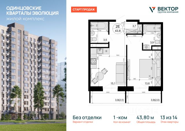 квартира-студия в ЖК комфорт-класса "Времена года" на 1 этаже в 9 этажном корпусе 12. Общая площадь: 50.7 кв.м., жилая: 19.43 кв.м. Высота потолков 2.76 м. "Времена года" современный жилой комплекс комфорт-класса, расположенный в тихом и зеленом подмосковном городе Апрелевка, в 1 минуте пешком от станции МЦД-4 "Победа". 1-я очередь уже заселена, сейчас ведется строительство 2-го этапа 2-й очереди, которая будет сдана к 3 кварталу 2025 года. Комплексная застройка территории общей площадью 12,9 Га включает в себя малоэтажные жилые корпуса, собственные детский сад и школу. Первые этажи домов первой очереди и второго этапа второй очереди отведены под социальную инфраструктуру. Корпуса малоэтажные не более 9 этажей. Различные варианты квартир эргономичных планировок от студий до трехкомнатных, площадью от 29,6 до 93,7 м² доступны покупателям. На территории комплекса будет собственный детский сад и школа, в 15 минутах расположен физкультурно-оздоровительный комплекс ""Мелодия"" с бассейном. Недалеко от ЖК находится лес с прудами для прогулок и занятий спортом. Инфраструктура ""Времена года"" включает в себя не только объекты первой необходимости, такие как продуктовые магазины, аптека, салон красоты, кафе, но и детский клуб ""Кот да Винчи"" для самых маленьких жителей. Для удобства жителей предусмотрено достаточное количество парковочных мест и система безопасности ""Безопасный регион"". Кроме того, жители могут воспользоваться развитой инфраструктурой города Апрелевка, всего в 4 минутах езды на электричке либо 10 минутах на автомобиле. Квартиры свободной планировки будут сдаваться без отделки, что позволит обустраивать пространство по своему вкусу. В продаже представлены студии, одно-, двух- и трехкомнатные квартиры различной площади. Также доступны ипотечные программы от различных банков." Дорога от комплекса до Москвы займёт порядка 38 мин (станция БКЛ "Аминьевская"), а до Белорусского вокзала и Тверской улицы — не более 58 минут. Удобный выезд на Киевское и Боровское шоссе, 25 минут на авто до МКАД.