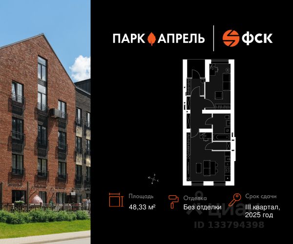 Прямая продажа от застройщика! Загородный жилой комплекс класса Комфорт Плюс. Продаётся 1-к квартира 103 общей площадью 28.1 кв.м на 5-м этаже 5 этажного дома. Без отделки. Расположение комплекса: "Апрелевка Клаб" это жилой комплекс всего в 30 км от Москвы по Киевскому шоссе, где городские удобства гармонично сочетаются с природой. Здесь начинается новая ступень жизни: современная малоэтажная застройка не нарушает живописные виды, а закрытая территория дарит чувство безопасности. Особенности проекта: - Улучшенная отделка МОПов - Социальная инфраструктура в шаговой доступности: муниципальные детский сад и школа, поликлиника - Не просто школа: школа МГИМО - Школа искусств МАРХИ - Всесезонное уникальное благоустройство: от города к природе через призму искусства - Комфортное пространство (спорт, досуг с детьми, работа в удаленном формате с прекрасными видами, место для творчества, тихие места для уединения и размышления) - Отличная транспортная доступность Транспортная доступность: - Метро Филатов Луг и Рассказовка 25 км - МЦД Апрелевка 5 км - МКАД — 30 км - Садовое кольцо — 45 км - Метро в Троицке (открытие в 2030) — 22 км - Ближайшая остановка общ. транспорта "Фрунзевец" 550 м - Ст. м. "Саларьево" 30 мин. на автобусе Внутренняя инфраструктура: Здесь есть хобби на любой вкус, возраст и сезон. Велосипедные, беговые и прогулочные маршруты, уличный workout, летний амфитеатр, спортивная площадка, центральная площадь с сухим фонтаном и игровыми зонами. Крытые развлечения: зона коворкинга, детская комната, кафе. В жилом комплексе будет современная школа на 830 мест и детский сад на 400 мест нового формата: с просторными классами и современным оснащением согласно высоким стандартам. Также на территории будет размещена школа искусств. Дворы без машин, игровые зоны и маршруты для прогулок с навигацией минимизируют риски и создают ощущение защищенности. Вдоль южной границы комплекса протекает река Десна, создавая зону отдыха в природном окружении.