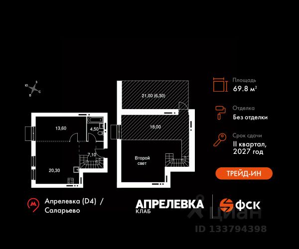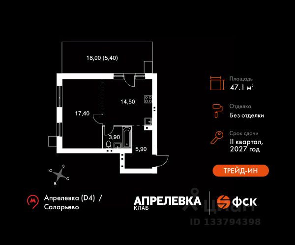 Прямая продажа от застройщика! Загородный жилой комплекс класса Комфорт Плюс. Продаётся 3-к квартира номер 90 общей площадью 106.2 кв.м на 5-м этаже 5 этажного дома. Без отделки. Особенности: - Квартира доступна к покупке в Trade-In. - Распашная планировка - отличное сочетание удобства и свободы. - Двухуровневая квартира - пространство и стиль в одном. - Терраса - место для загара и вечерних посиделок. - Вид из окна: двор - Вид из окна на шоссе Квартира без отделки. Чистый холст для воплощения интерьера вашей мечты. Расположение комплекса: "Апрелевка Клаб" - это жилой комплекс всего в 30 км от Москвы по Киевскому шоссе, где городские удобства гармонично сочетаются с природой. Здесь начинается новая ступень жизни: современная малоэтажная застройка не нарушает живописные виды, а закрытая территория дарит чувство безопасности. Особенности проекта: - Улучшенная отделка МОПов - Социальная инфраструктура в шаговой доступности: муниципальные детский сад и школа, поликлиника - Не просто школа: школа МГИМО - Школа искусств МАРХИ - Всесезонное уникальное благоустройство: от города к природе через призму искусства - Комфортное пространство (спорт, досуг с детьми, работа в удаленном формате с прекрасными видами, место для творчества, тихие места для уединения и размышления) - Отличная транспортная доступность Транспортная доступность: - Метро Филатов Луг и Рассказовка - 25 км - МЦД Апрелевка - 5 км - МКАД — 30 км - Садовое кольцо — 45 км - Метро в Троицке (открытие в 2030) — 22 км - Ближайшая остановка общ. транспорта "Фрунзевец" - 550 м - Ст. м. "Саларьево" - 30 мин. на автобусе Внутренняя инфраструктура: Здесь есть хобби на любой вкус, возраст и сезон. Велосипедные, беговые и прогулочные маршруты, уличный workout, летний амфитеатр, спортивная площадка, центральная площадь с сухим фонтаном и игровыми зонами. Крытые развлечения: зона коворкинга, детская комната, кафе. В жилом комплексе будет современная школа на 830 мест и детский сад на 400 мест нового формата: с просторными классами и современным оснащением согласно высоким стандартам. Также на территории будет размещена школа искусств. Дворы без машин, игровые зоны и маршруты для прогулок с навигацией минимизируют риски и создают ощущение защищенности. Вдоль южной границы комплекса протекает река Десна, создавая зону отдыха в природном окружении. Цены указаны с учетом скидки.