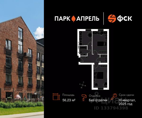Прямая продажа от застройщика! Загородный жилой комплекс класса Комфорт Плюс. Продаётся 2-к квартира 52 в сданном корпусе общей площадью 56.23 кв.м на 4-м этаже 4 этажного дома. Без отделки. Расположение комплекса: Уникальный жилой комплекс, расположенный в 20 минутах от Москвы по Киевскому шоссе и окруженный первозданным лесом. В Парк Апрель легко наслаждаться жизнью на природе, не отказываясь от привычного уровня комфорта. Это возможно, благодаря уникальному сочетанию преимуществ комплекса. ЖК, окруженный с трех сторон лесом - подарит вам возможность дышать полной грудью и наслаждаться прекрасными видами, а развитая инфраструктура, транспортная доступность и высокий уровень безопасности принесут спокойствие и безмятежность. Транспортная доступность: МКАД в 20 минутах по Киевскому шоссе по современной скоростной трассе. Автобусная остановка в 200-х метрах от дома. 9 маршрутов наземного транспорта, автобусы до станций метро Юго-Западная, Саларьево, Румянцево, Тропарево. 25 минут на МЦД D4 до Киевского вокзала. Внутренняя инфраструктура: Развитая инфраструктура жилого комплекса, включает муниципальную школу, детский сад, торговый центр и другие объекты. Расположение домов тщательно продумано, так что из окон открываются красивые виды на тихие дворики и окружающий лес, а всего за 10 минут на личном или общественном транспорте вы доедете до любой из двадцати школ, поликлиники или современного дворца спорта. Разумеется, в Апрелевке найдутся также торговые комплексы, фитнес-центры и многое другое. Для кровли используется черепица, имеющая отличные тепло- и шумоизоляционные характеристики. Благодаря стенам из керамических на протяжении всего года в доме будет здоровый микроклимат, а облицовка бельгийский кирпичом придает особое очарование фасадам. Вы сможете создать уникальный формат жилья, который подойдет именно вам. Просторная кухня - гостиная, отдельный кабинет для работы, мастер-спальня с гардеробной и ванной - квартира со свободной планировкой позволяет воплотить в жизнь все ваши идеи С трех сторон Парк Апрель окружен лесом и малоэтажной частной застройкой, поблизости отсутствуют вредные производства. В пешей доступности находятся две реки и лесной массив, откуда удачная роза ветров приносит свежий воздух Жителям Парк Апрель доступна развитая инфраструктура Апрелевки: два десятка образовательных учреждений, спортивная школа, современный дворец спорта, поликлиники, фитнес-центры, магазины и торговые комплексы. Все объекты расположены не более, чем в 10 минутах езды на машине. Продам квартиру квартир в Парк Апрель в Апрелевке.