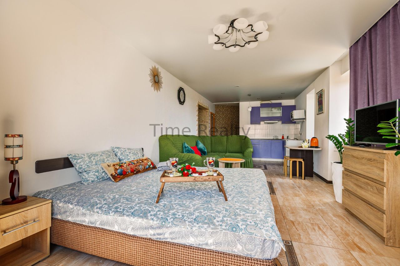 Сдаётся в аренду на длительный Студия с современным ремонтом, расположенная на 13 этаже 14 этажного современного монолитного дома в г. Апрелевка. Дом находится в районе с развитой инфраструктурой и с хорошим транспортным сообщением: 15 мин. свободным шагом до ст. Апрелевка (электрички в Москву и область каждые 15 минут) , 5 мин.свободным шагом до автобусной остановки (прямые рейсы г. Москва, и по району). Рядом с домом: среднеобразовательная школа, дет.сады, поликлиники, ярмарка, торгово-развлекательные центры, сетевые магазины, банки, авто-техцентры, платные охраняемые парковки и многое другое. В студии выполнен хороший современный ремонт. Студия полностью меблированная, есть всё необходимое для комфортного проживания стиральная машинка, холодильник, электрическая варочная, микроволновка, электрочайник, вытяжка. В комнате имеются большой плазменный телевизор двухспальная кровать, угловой диван. Совмещенный санузел. Прекрасный вид из окна!