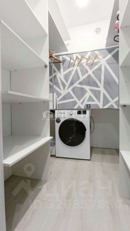 - Гардеробная-постирочная с местами хранения и встроенной стиральной машиной-сушилкой.