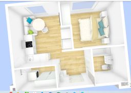 В квартире спальня, кухня, совмещенный санузел, гардеробная (постирочная).