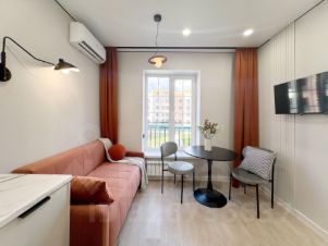 В квартире установлен кондиционер, в санузле теплые полы и полотенцесушитель.