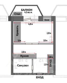 В квартире сделан косметический ремонт. Пространство студии обставлено необходимой мебелью, как в комнате, так и на кухне. Для вашего удобства есть холодильник. Ванная комната оборудована полноценной ванной, что позволяет расслабиться после долгого дня.