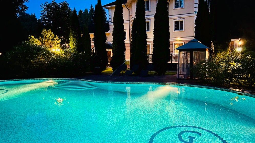 Уединенный особняк расположен среди живописных лесных пейзажей и ухоженных ландшафтных уголков, где продумана каждая деталь для настоящего отдыха. Просторные светлые залы, где гармонично сочетается изысканная мебель и стильный интерьер, отлично подойдут как для торжественного банкета, так и для камерной церемонии. Для гостей предусмотрено множество уютных спален, чтобы каждый смог уединиться и отдохнуть после насыщенного дня.