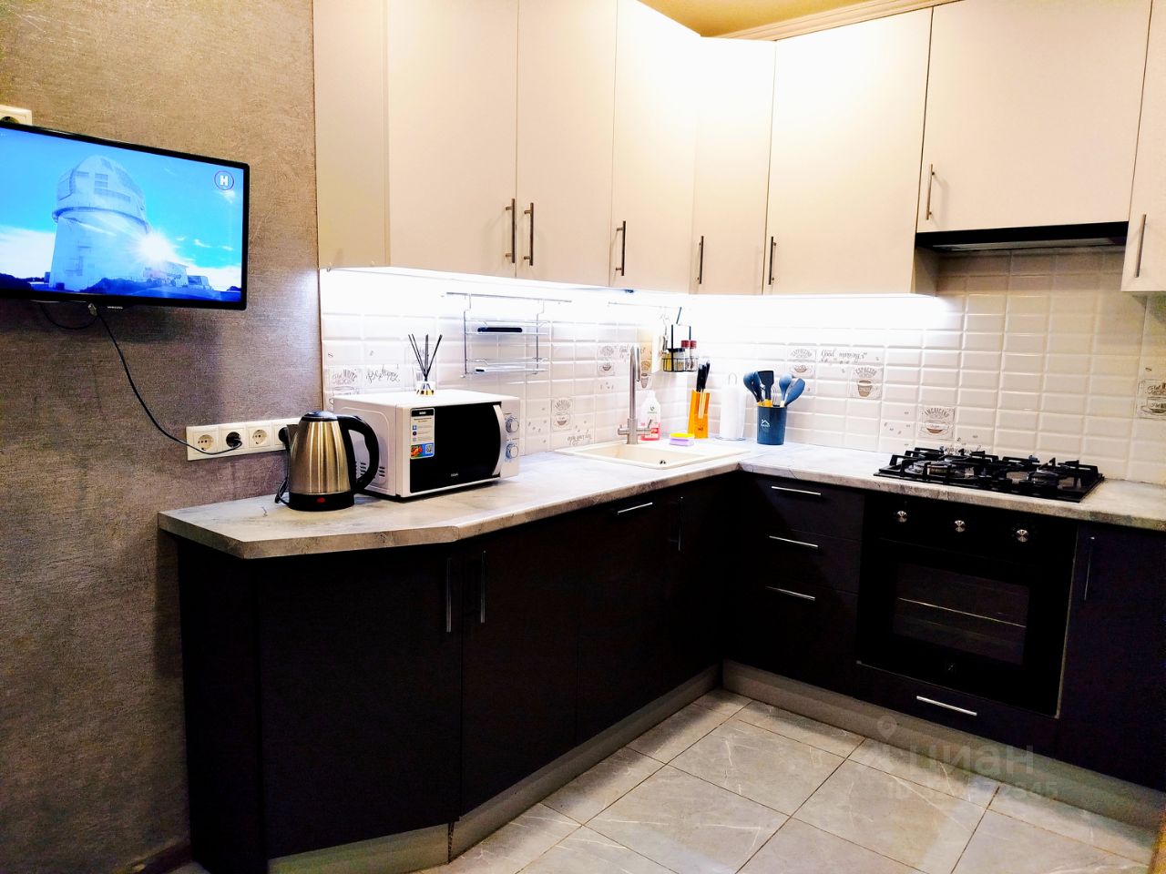 Кухня со всей необходимой бытовой техникой(микроволновка, холодильник, посудомойка, чайник, плита газовая , духовка) и посудой.