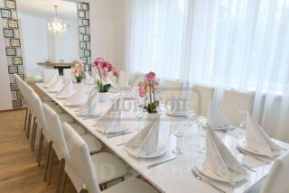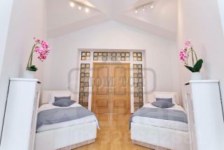 ТОП 123 Сдается роскошная белоснежная вилла в элитном охраняемом посёлке посуточно и на выходные. Возможна аренда на месяц. Дом находится в 28 км от МКАД по Киевскому или Минскому шоссе. УЧАСТОК: 52 соток. Ландшафтный дизайн. Ухоженная зелёная территория. Высажены кустарники и цветы. Посажен газон. Множество хвойных и лиственных деревьев. Дорожки облагорожены. Территория освещается в вечернее время суток, красивая подсветка деревьев изнутри. Лобное место с очагом с удобными релакс креслами. Мангальная зона, беседка на 10-15 персон. Уличный летний бассейн. Парковка на 8-10 автомобилей на территории виллы, также есть гостевая парка рядом с домом. В ДОМЕ: 2 этажа, 570 кв.м., 7 уютных спален с кроватями 200*200, 26 спальных мест. Просторный панорамный банкетный зал на 26 персон. Гостиная каминный зал на 15 персон, столовая, верхняя смотровая терраса. Кухня с необходимой посудой и техникой. Спа-зона. СПА-зона: финская сауна Тylо с ароматерапией с 10-ю температурными режимами; хаммам пародушевая Тylо с ароматерапией, мини-водопадом, ручным и тропическим душем; бассейн с противотоком 3*3*2; место отдыха у бассейна, место отдыха у сауны; релакс зона для отдыха, теннисный стол; второй хаммам Тylо с ароматерапией, мини-водопадом, ручным и тропическим душем; джакузи, ванна. РАЗВЛЕЧЕНИЯ: настольные игры, камин, телевизор, интернет, СПА-зона, теннисный стол. В пешей доступности детская площадка и футбольное поле. Рядом семейная конюшня в стиле английской фермы; заброшенная усадьба Мещерских в селе Алабино (Петровское); Парк Патриот. СТОИМОСТЬ зависит от количества гостей и сезона: Будни от 80.000 руб. Сутки в выходные от 100.000 руб. СПА-зона: 15.000 руб. Уборка: 10.000 руб. Банкетный зал: 30.000 руб Теплый сезон +30% Новый год 31.12-02.01: от 570.000 руб. Заезд / выезд: 17:00 / 13:00 ЗАЛОГ (депозит, обеспечительный платеж) от 30.000 руб. Оплачивается при заезде, возвращается при выезде. Для Вашего удобства наши коттеджи пронумерованы. Назвав номер топа, Вы получите исчерпывающую информацию по коттеджу.