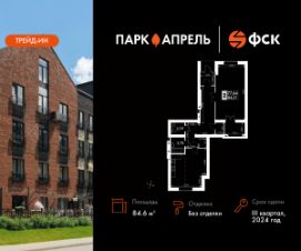Продаётся 2-к квартира номер 6 в сданном корпусе общей площадью 84.6 кв.м на 1-м этаже 4 этажного дома. Garden Flat.