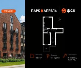 Продаётся 2-к квартира номер 15 в сданном корпусе общей площадью 60.63 кв.м на 1-м этаже 4 этажного дома.