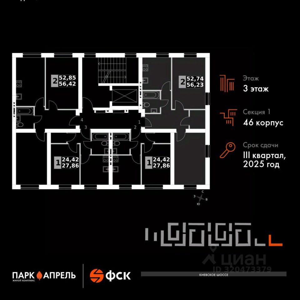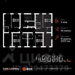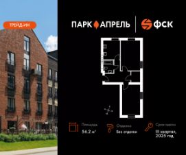 Продаётся 2-к квартира номер 24 в сданном корпусе общей площадью 56.23 кв.м на 3-м этаже 4 этажного дома.