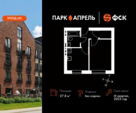 Продаётся 1-к квартира номер 25 в сданном корпусе общей площадью 27.86 кв.м на 3-м этаже 4 этажного дома.