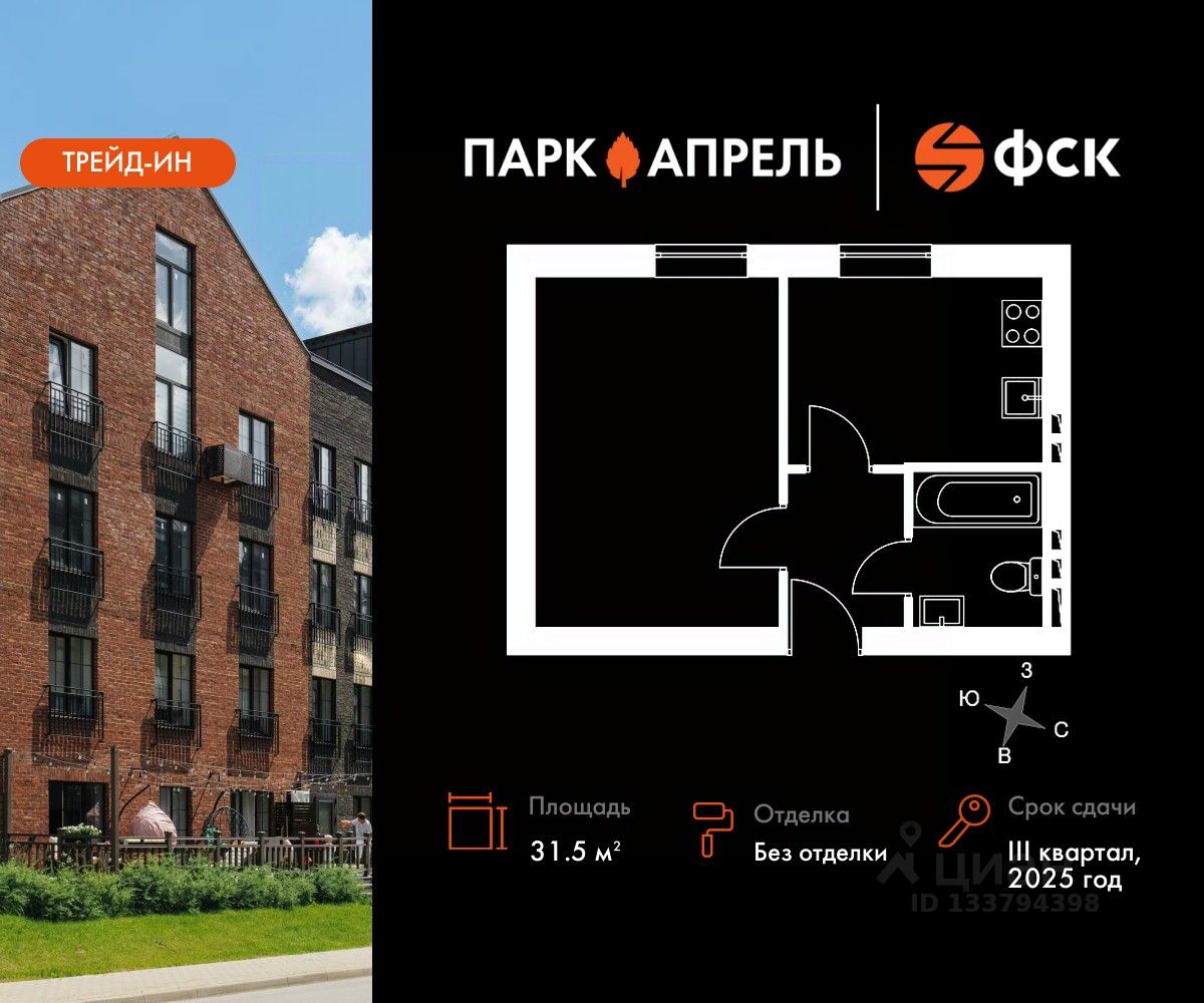 Продаётся 1-к квартира номер 86 в сданном корпусе общей площадью 31.53 кв.м на 3-м этаже 4 этажного дома.