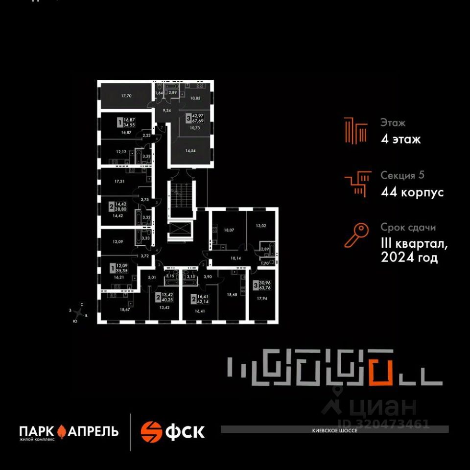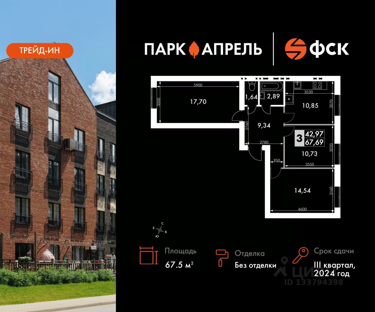 Продаётся 3-к квартира номер 132 в сданном корпусе общей площадью 67.5 кв.м на 4-м этаже 4 этажного дома. Sky Loft.