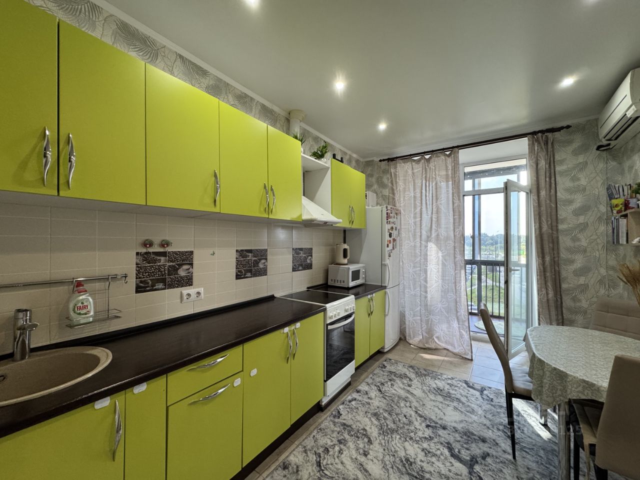Общая площадь квартиры 37.6 кв.м., комната 20.5 кв.м. (сделано зонирование), площадь куxни 10.4 кв.м., с/узел совмещен, лоджия с панорамным тонированным остеклением.