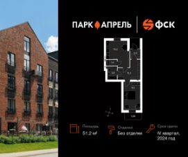 Продаётся 1-к квартира 12 в сданном корпусе общей площадью 51.2 кв.м на 1-м этаже 4 этажного дома. Без отделки.