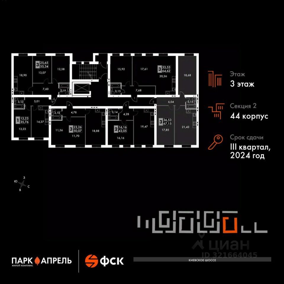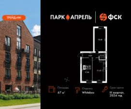 Продаётся 2-к квартира номер 38 в сданном корпусе общей площадью 67 кв.м на 3-м этаже 4 этажного дома.