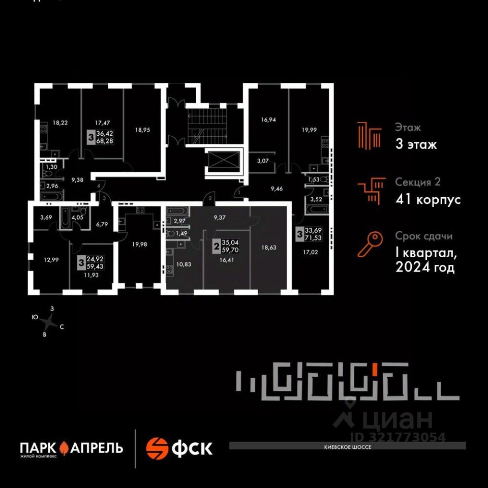 Продаётся 2-к квартира номер 26 в сданном корпусе общей площадью 59.5 кв.м на 3-м этаже 4 этажного дома.