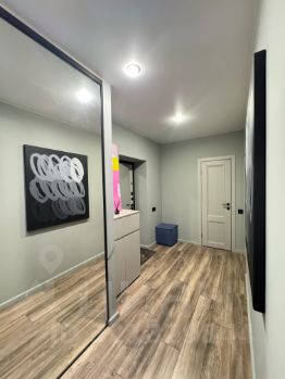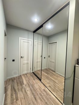 Просторная прихожая и продуманная система хранения (встроенный шкаф-купе до потолка и зеркальными дверьми).