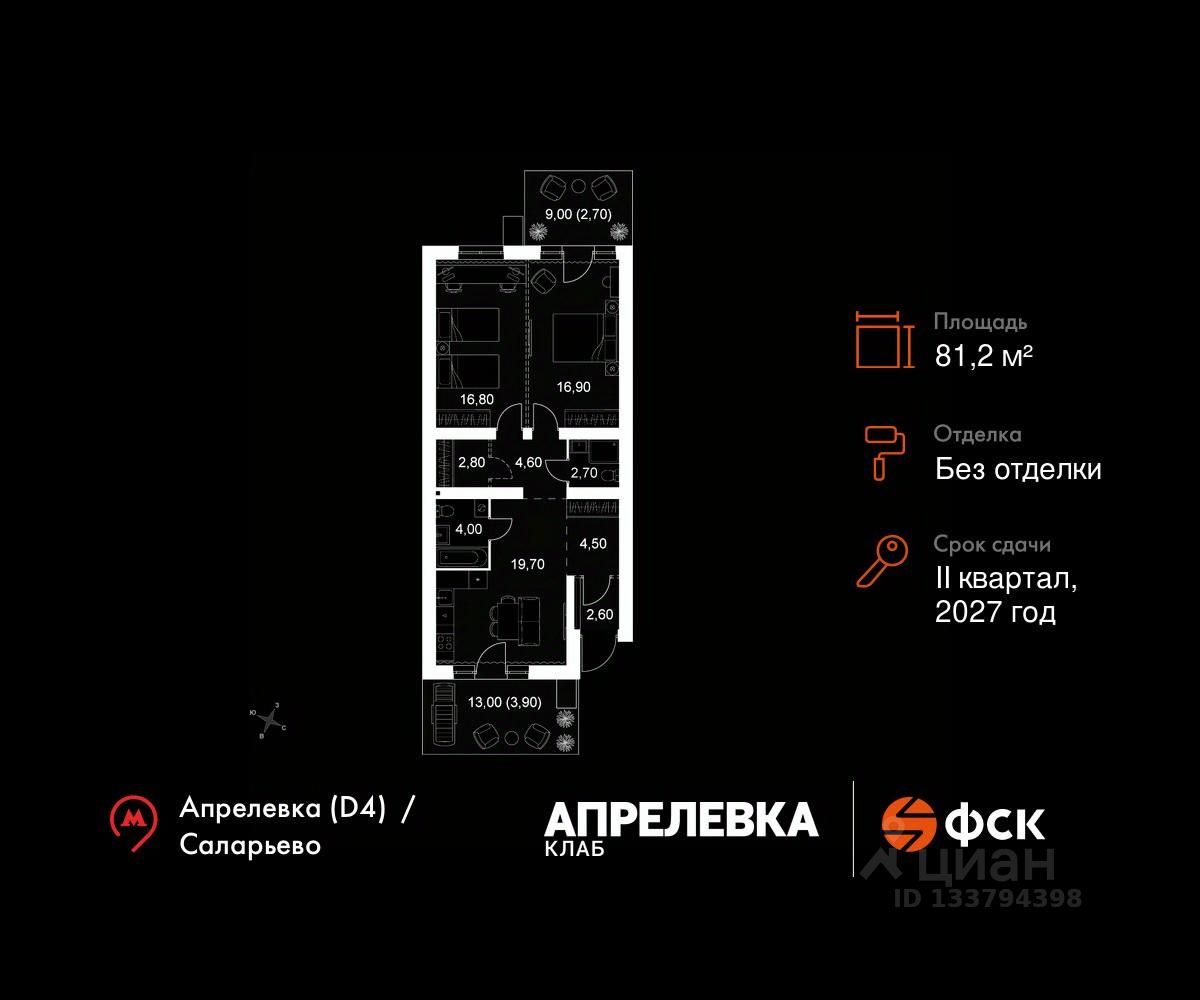 Продаётся 3-к квартира 133 общей площадью 81.2 кв.м на 1-м этаже 5 этажного дома. Без отделки.