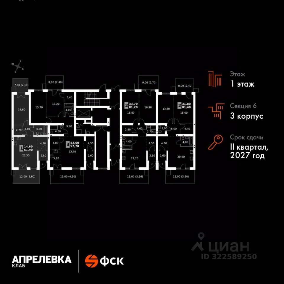 Продаётся 2-к квартира номер 133 общей площадью 61.9 кв.м на 1-м этаже 5 этажного дома. Без отделки.