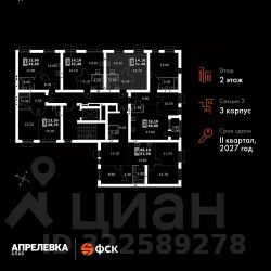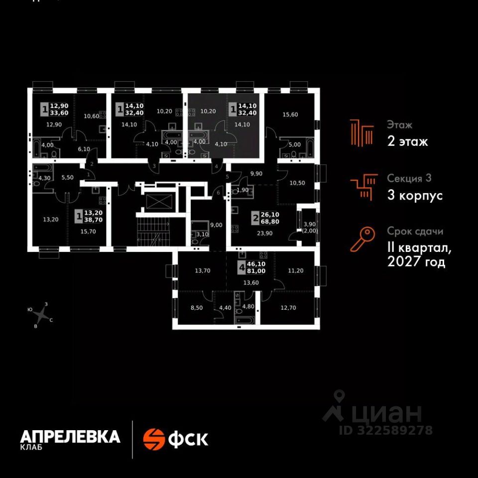 Продаётся 1-к квартира номер 69 общей площадью 32.4 кв.м на 2-м этаже 5 этажного дома. Без отделки.